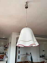 Lampadario fazzoletto in vetro di murano con elegante bordo rosso, dal design semplice ma raffinato.