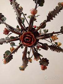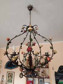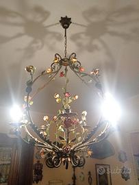 Lampadario Ferro Battuto D'epoca