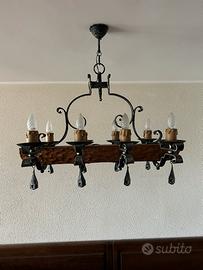 Lampadario di ferro battuto in legno rustico per cucina. Vendo per rinnovo locale