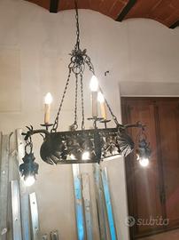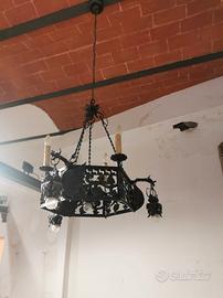 Lampadario in ferro battuto in stile Neogotico - Fine XIX / Inizio XX secolo