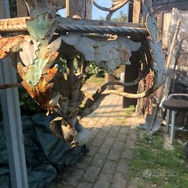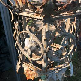 Lampadario ferro battuto a mano 3 luci, origine italia fine 800, impianto elettrico da rifare, metallo in buone condizioni, da restaurare.
