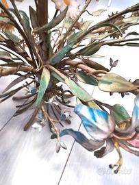 E' elegante, molto femminile e delicato, con il suo bouquet di fiori colorati e foglie, dotato di 5 bracci con nuovo cablaggio (ho fatto sostituire i fili elettrici per metterlo a norma 3 anni fa).