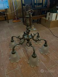 Lampadario sei bracci in metallo e rifinitura in vetro