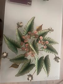 In vendita lampadario in ferro, lavorazione foglie e fiori (calle) più un ramo di colore rosa/rosso nella parte centrale, forma tondeggiante, diametro max cm. 80 con 5 porta lampadine max 40 W ciascuna. Adatto per ambiente cucina, soggiorno, taverna ecc.