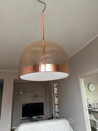 Lampada a sospensione di Fontana Arte di 48x 77 e arriva fino a 250 cm di lunghezza. Di colora oro rosato, è di vetro di Murano. Vi è ancora il libretto di istruzioni