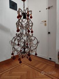 Lampadario francese in cristallo di Murano con gocce di ametista. Ottime condizioni