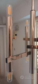 Vendo bellissimo lampadario cromato,anni 70, Gaetano Sciolari 6 luci, con cavi nuovi e portalampada nuovi, due possibilità di accensione, a 3 luci e tutto acceso a sei,lampadine nuove a led 4 watt tubolari che sviluppano 40 watt.