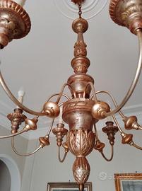bellissimo lampadario vintage dorato , 8 luci 80 x 80 + 40 catena
