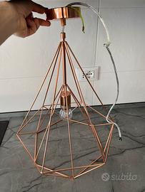 Elegante lampadario dal design geometrico. - Struttura in metallo color oro. - Lampadina a vista. In perfette condizioni. Cell:3452584795Marco