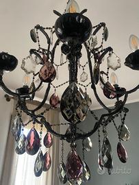 Lampadario classico a 6 luci + 1 centrale con eleganti cristalli pendenti, perfetto per donare un tocco sofisticato a qualsiasi ambiente. I pendenti, nei toni del grigio, bianco e bordeaux, creano un gioco di luce raffinato, mentre la struttura è stata leggermente tinteggiata di nero per conferirgli un aspetto più contemporaneo. Ideale per salotti, sale da pranzo unisce il fascino del design tradizionale con dettagli moderni che lo rendono versatile e di grande impatto estetico.