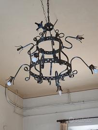 Il lampadario è stato realizzato da un fabbro della Zona ( quindi è fatto a mano ) è pesante perchè composto da barre in ferro dello spessore di circa 3 mm .