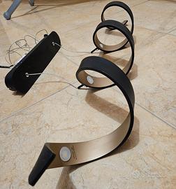 Lampadario HELIX S4C firmato Luce Ambiente Design, composto da una struttura in alluminio dalla forma a molla molto originale. La luce viene diffusa in modo diretto verso il basso tramite i 4 piccoli diffusori posti nella parte superiore nella struttura.