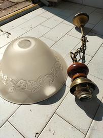vendo singolarmente lampadario pendente in legno con cappello in vetro. senza difetti e funzionante. possibilità di acquisto in coppia. Indicare a quale dei due si è interessati. Per l'acquisto in coppia riduco il prezzo a 75.00€