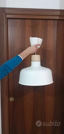 vendo per cambio arredo lampadario IKEA BUNKEFLO a sospensione. Colore bianco/betulla. Diametro 36 cm,. Lunghezza filo 1.4 metri. Lmpadina max 22 w