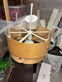 Lampada a sospensione IKEA SODAKRA in betulla. Diametro del paralume: 45 cm. Altezza minima: 58 cm. Altezza massima: 192 cm. Lampadina: Supporta una potenza massima di 16 W ed è compatibile con lampadine LED E27 (vendute separatamente). Materiale: Realizzata in impiallacciatura di betulla, che diffonde una luce calda e naturale.