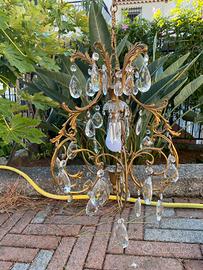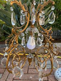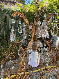 Lampadario classico con struttura ottonata dorata e pendenti in cristallo. Una sola luce