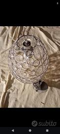 Vendo lampadario a sospensione, design a sfera/gabbia. La struttura è in metallo cromato, mentre i pendenti sono in plastica trasparente, che imita il cristallo. Perfettamente funzionante e in buono stato