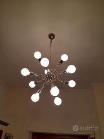 Lampadario in acciaio a 12 luci per risparmio energetico, possibilità di accendere sei luci per volta. Il lampadario È come nuova perfetti in ogni sua parte di qualità Superiore. Con il lampadario vengono consegnate anche le 12 lampadine a risparmio energetico