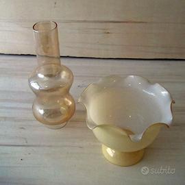 In legno e metallo. Con lampade e decorazioni in vetro.