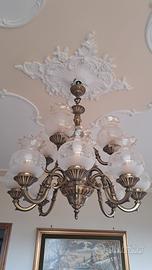 Lampadario in bronzo con attacchi lampadine E27. Lampadine superiori e inferiori accendibili separatamente.
