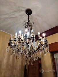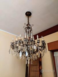Venso lampadario in bronzo con cristalli appesi.