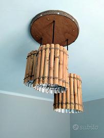 Lampadario in canna naturale tutto fatto a mano. Una vera e propria opera d'arte in esemplare unico. Caratterizzato da 3 punti luce fissi che danno vita ad un gioco di luci eccezionale che si diffonde in tutta la stanza. Il colore cangiante ed i particolari in corda di juta, impreziosiscono il carattere unico nel suo genere dell'elemento d'arredo. Dimensioni 38 x 38 x 56 centimetri.