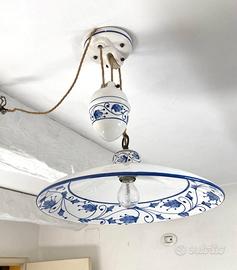 Vendo lampadario in ceramica artigianale di Faenza con decoro tradizionale blu.