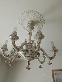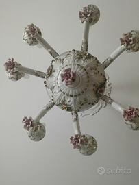 meraviglioso lampadario in ceramica dipinto a mano con gocce e rose fi ricambio prezzo 200€ trattabile