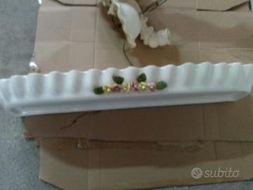 Lampadario antico in ceramica a 3 luci con mensola portaoggetti ,lampadario altezza totale 80 cm (45 cm il lampadario e 35 cm di catena),larghezza 45 cm.La mensola misura 64 cm lunghezza e 18 cm profondità,in buone condizioni,solo qualche puntino di smalto saltato,come da foto.Prezzo per entrambi i pezzi,30 euro.Ritiro a mano oppure spedisco al costo di 15 euro con pagamento anticipato tramite bonifico,paypal o altro metodo da concordare.Anche Whatsapp al 3282739613.