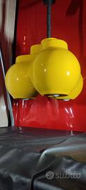 lampadario in ceramica smaltata tre luci colore giallo con sali/scendi anni 60'