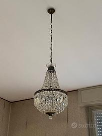 Lampadario stile impero a mongolfiera, in cristallo, buone condizioni, diametro cm 60