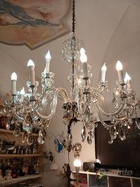 bellissimo lampadario in cristallo di boemia a 15 luci, 10 nella parte inferiore e 5 nel palco superiore. il lampadario ha oltre 50 anni, e ha subito degli adattamenti ( es piattelli portacenere diversi) ma ha un grande fascino! per lo smontaggio e rimontaggio occorre una persona pratica e quasi un giorno di lavoro ( a richiesta posso provvedere personalmente con pagamento a parte. dato la delicatezza del lampadario, non effettuo spedizioni.