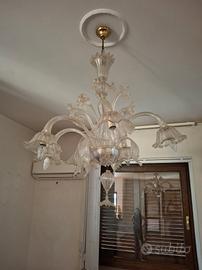 lampadario in cristallo di murano, con 6 punti luce e decorazioni varie. in ottimo stato e perfettamente funzionante. per collezionisti ed amatori.