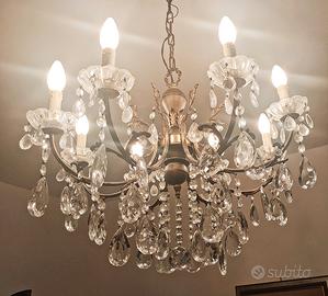 Elegante Lampadario in Cristallo stile Maria Teresa anni 50 a 8 punti luce e struttura in ottone.