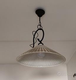 Lampadario in ferro battuto anticato e vetro stile decape a luce singola centrale Perfetto privo di difetti