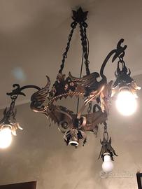 Vendo lampadario a 4 luci (3 bracci + 1 luce centrale) realizzato in ferro battuto artistico, di produzione artigianale italiana.