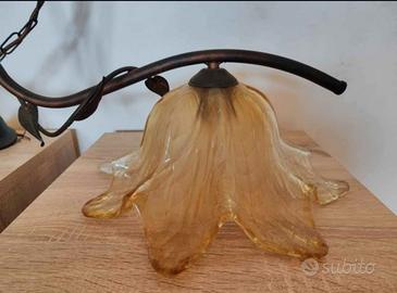 Vendo lampadario da cucina in ferro battuto a 2 bracci, con eleganti vetri trasparenti sfumati color ambra. Stile rustico e classico, perfetto per ambienti accoglienti come cucine, taverne o case di campagna.