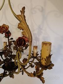 Lampadario in ferro battuto anni 1950/1960. Di fattura interamente artigianale con lavorazioni accurate nei dettagli. Perfettamente conservato e funzionante. Pezzo unico. Euro 60. - tel. 3208806777.