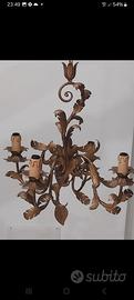 Magnifico lampadario in lamierino di ferro battuto dorato. Disponibile per ulteriori informazioni.