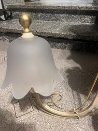 Lampadario in ferro battuto e ottone artigianale ottimo stato come da foto con due campane in vetro!