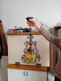 lampadario in vetro e ferro battuto come da foto. solo consegna a mano, non spedizione.