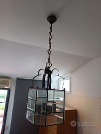 Lampadario in Ferro Battuto e Vetro