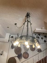 Lampadario d’epoca in ferro battuto forgiato a mano per amatori. Ritiro solo a domicilio