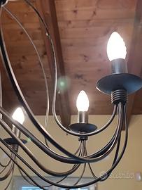 lampadario in ferro battuto colore antracite nero. diametro 75. Otto bracci. Altezza massima 120 cm. Corona attacco a soffitto 12 cm. Escluse lampadine.