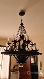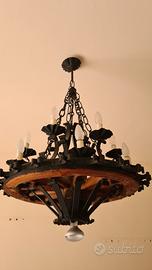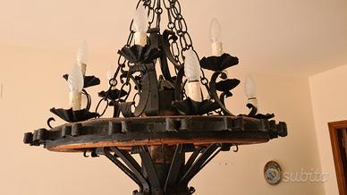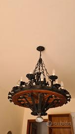 Vendo lampadario in ferro battuto a forma di ruota di carretto. Interamente realizzato a mano