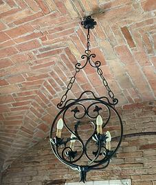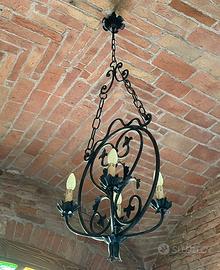 Lampadario in ferro battuto primi novecento a quattro luci Perfettamente funzionante È preferibile la CONSEGNA