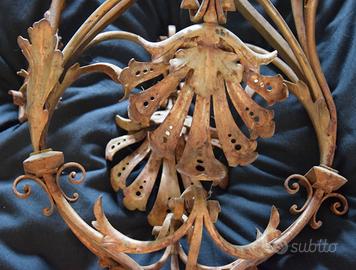 Meraviglioso lampadario in ferro battuto a mano in stile rococò.