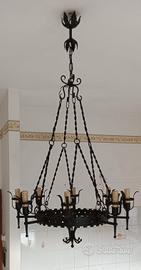Lampadario a soffitto in ferro battuto con 8 portalampada.