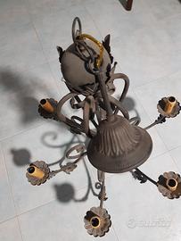vendesi lampadario in ferro battuto perfettamente funzionante con 6 lampade.3349035473