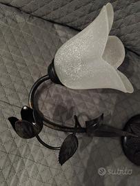 Lampadario in ferro battuto a soffitto color bronzo scuro con due luci le coppe sono in vetro opaco bianco sfumato vendo a euro 25